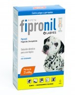 DESCRIPCIÓN: Fipro, pipeta antiparasitaria contra pulgas y garrapatas, con efecto adulticida por contacto. FÓRMULA: Cada 100 ml contiene: Fipronil 10,0 g Excipientes c.s.p. 100 ml INDICACIONES: Para el tratamiento, control y prevención contra pulgas y garrapatas en perros y gatos. Se recomienda la aplicación mensual del producto, el mismo puede ser aplicado a intervalos más cortos si el animal se encuentra en ambientes muy infestados o si padece dermatitis alérgica por picadura de pulga, según criterio profesional. Se puede utilizar en: Cachorros a partir de las 8 semanas de vida y de 1 kg de peso. Gatitos a partir de las 10 semanas de vida y de 1 kg de peso. Hembras lactantes y gestantes. VÍA DE ADMINISTRACIÓN: Uso externo spot-on en forma directa sobre la piel, dentro de un área de distribución entre la unión de las escápulas y la unión de los pabellones auriculares.